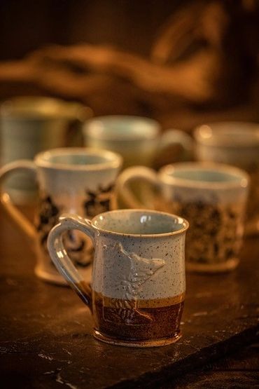 As she’s throwing clay, Wendy thinks about you and how you’ll use the piece. Will the mug’s handle nestle comfortably in your hand? Will its rim feel good on your lip? When she paints designs onto fired pieces, she channels the outdoors that are her element, gardens she’s grown, adventures she carries. Mixing her own glazes and colors, she calls in the BWCAW’s Northern Lights, borrows scenes from Minnesota’s divergent seasons, and stirs the waters and skies she memorizes when open water swimming. She knows that functional dishware is the dishware that gets used! Functional art introduces into a home dishware that gets both used and loved.