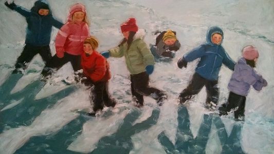 Woodward’s work as a family and child therapist has influenced her art. Her favorite subject matter is children. Jill likes to paint them alone in everyday yet ideal situations; when they appear to be unaware of an observer, when they are most truly themselves. She strives to achieve a serene and subtly dream-like quality in her work. Her paintings appear to be real and at the same time, not true. As Nietzche said, “We have art in order not to die from the truth.”
