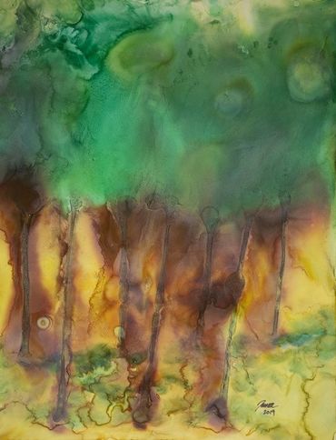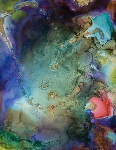 I often rethink my paintings in the middle of the process and recreate entire sections. Sometimes I create right over an old painting of mine that I never liked, allowing textures from the hidden layers to become part of the composition.